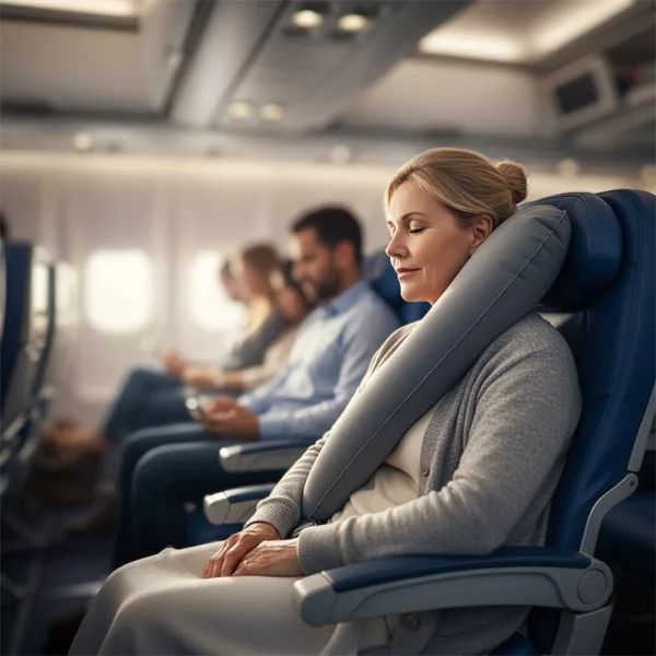 Ich benutze mein aufblasbares Kissen jedes Mal, wenn ich mit dem Zug meine Familie besuche. Keine steifen Schultern mehr!