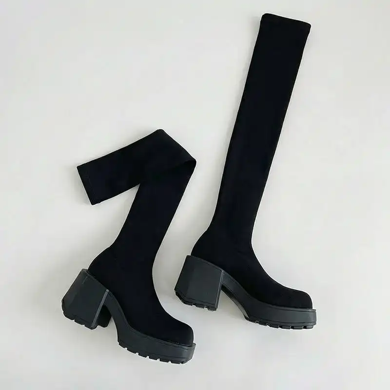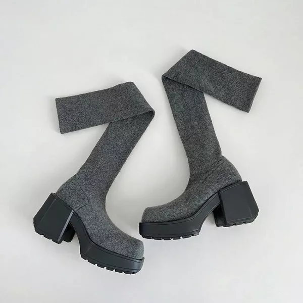 Das dicke, gestrickte Obermaterial hält Beine und Füße draußen warm. Plateau schützt vor nassen Gehwegen und kaltem Wetter.