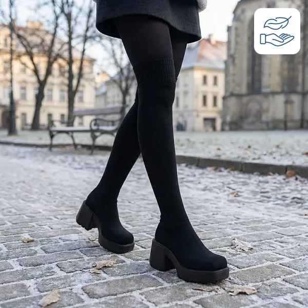 Schlüpfen Sie in die Ortorex Stiefel und genießen Sie sofortigen Komfort und Halt. Das kuschelige, gestrickte Material schmiegt sich sanft an Ihre Beine, ohne zu reiben oder zu verrutschen. Dicke Sohlen erleichtern das Gehen und schützen vor kalten Böden. Diese Schuhe verleihen Höhe, ohne das Gleichgewicht zu beeinträchtigen.