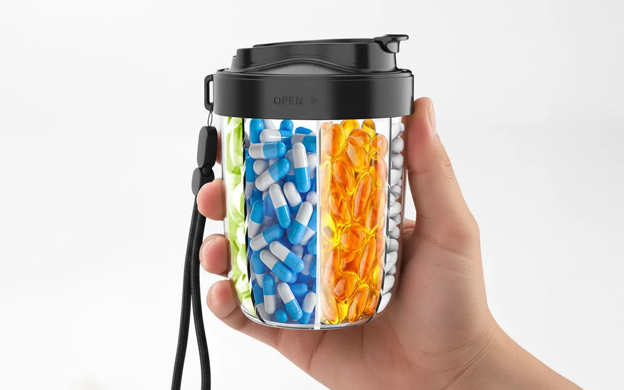 Ichze dieses Etui jeden Tag für Vitamine. Passt direkt in meinen Rucksack und ich vergesse jetzt keine Dosis mehr. Die Fächer klicken auch sicher zu.