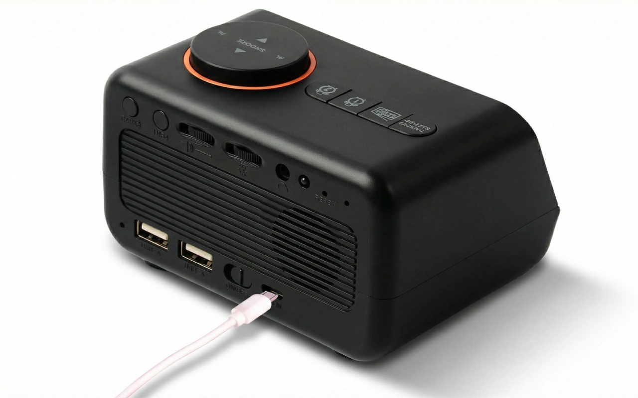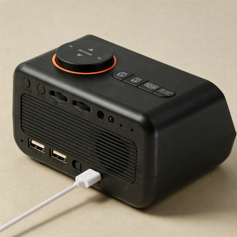 Ich habe ihn auf meinem Nachttisch. Der dimmbare Bildschirm ist angenehm für meine Augen, und die USB-Anschlüsse sparen Platz, weil sie mein Handy und Tablet laden.