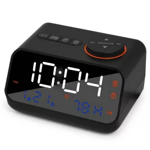 Überprüfen Sie Temperatur, Luftfeuchtigkeit und Kalender, wann immer Sie hinüberschauen. Zwei USB-Anschlüsse machen das Laden von Geräten schnell und unkompliziert.