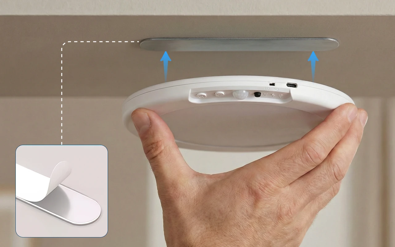 Montieren Sie die Ortorex-Deckenleuchte in Sekunden mit starken Magneten. Kein Werkzeug oder komplizierte Anleitungen für die Installation nötig.