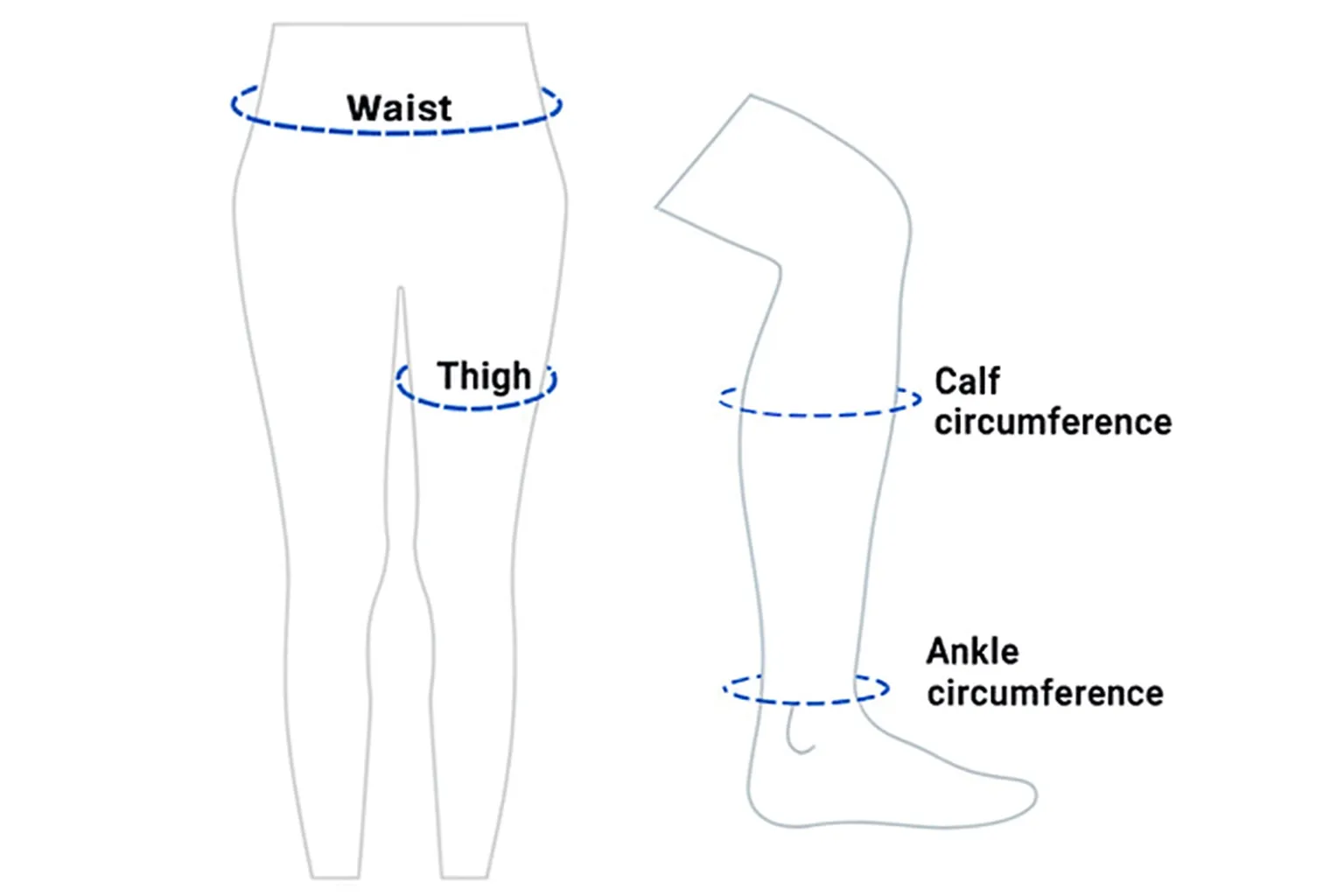 SIZE | WAISTLINE | THIGH | CALF | ANKLE | ||||