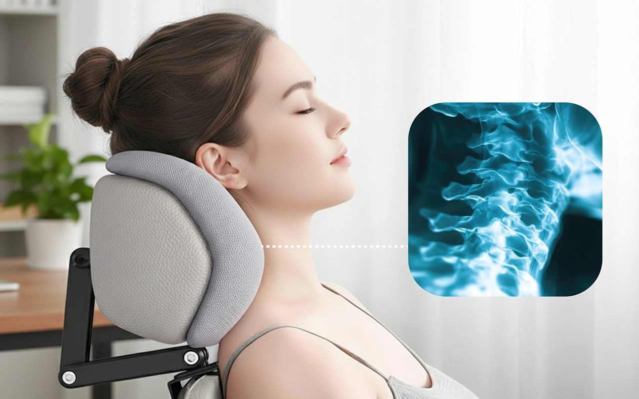 Reduzieren Sie Verspannungen in Ihren Schultern, indem Sie Ihren Kopf sanft halten. Diese Unterstützung verringert den Druck und verhindert Unbehagen durch schlechte Sitzhaltung.