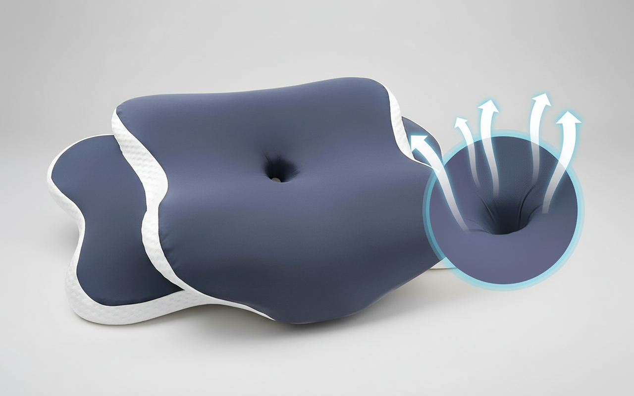 Luft strömt leicht durch das Kissen, um Überhitzung in der Nacht zu vermeiden. Frische und Komfort bleiben für Stunden ungestörter Ruhe erhalten.