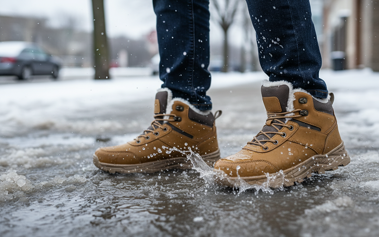 Eine spezielle Barriere hält Pfützen, Schnee und Spritzer zuverlässig fern. Nasse Socken oder eiskaltes Wasser verderben Ihnen nicht mehr den Tag.
