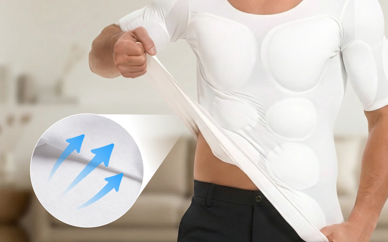 Herren Unterhemd mit Fake-Bauchmuskeln und Polstern