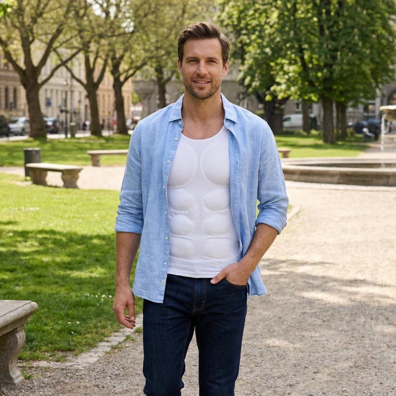Ich habe dieses Sixpack-Shirt zu meinem Klassentreffen getragen und alle haben gefragt, wie ich so fit geworden bin. Es war den ganzen Abend bequem und sah unter meinem Hemd echt aus.