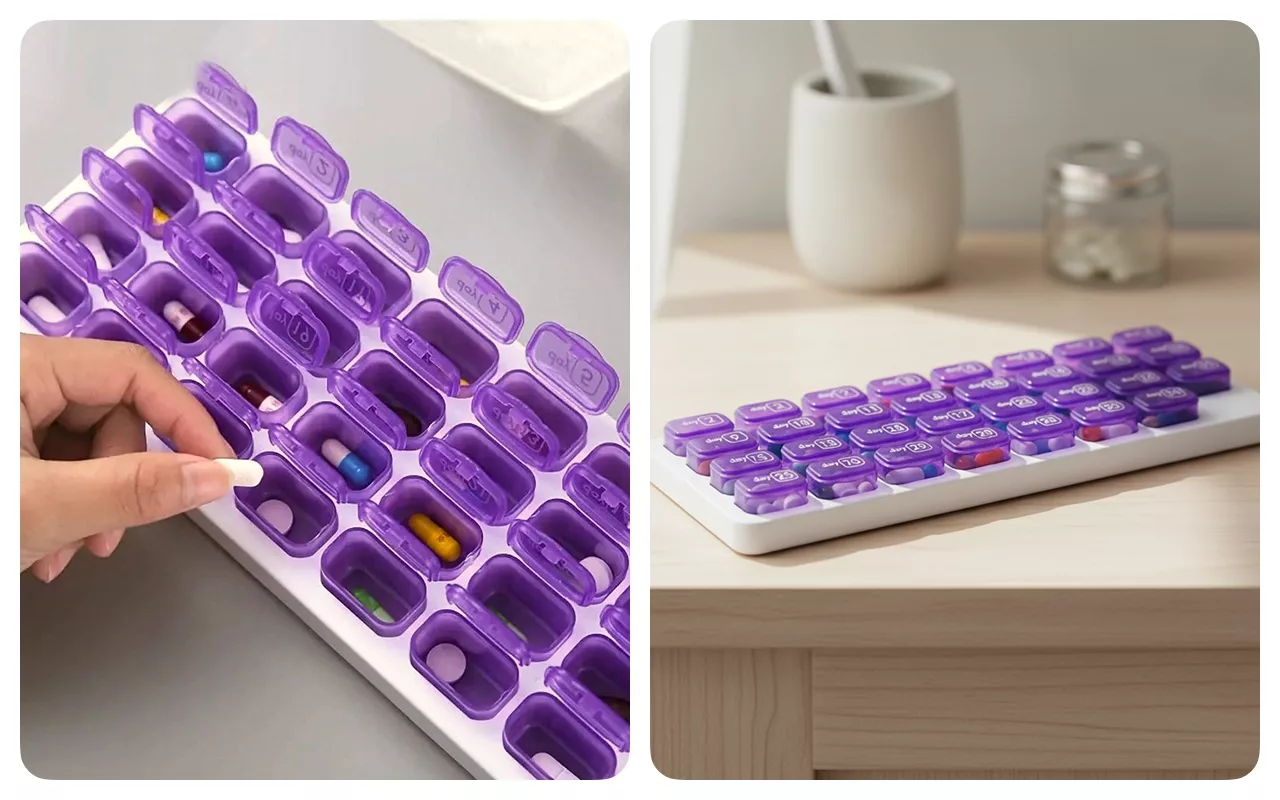 Nie wieder Sorgen machen, eine Dosis zu verpassen oder durcheinanderzukommen. Jedes Fach ist für das richtige Datum markiert.