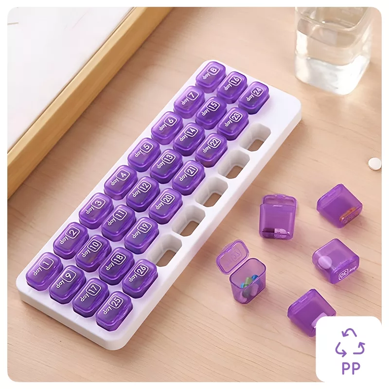 Nie wieder Sorgen machen, eine Dosis zu verpassen oder durcheinanderzukommen. Jedes Fach ist für das richtige Datum markiert.