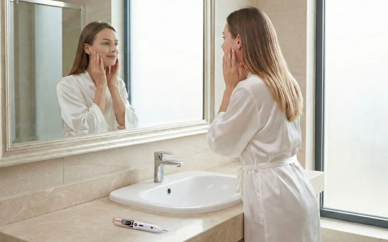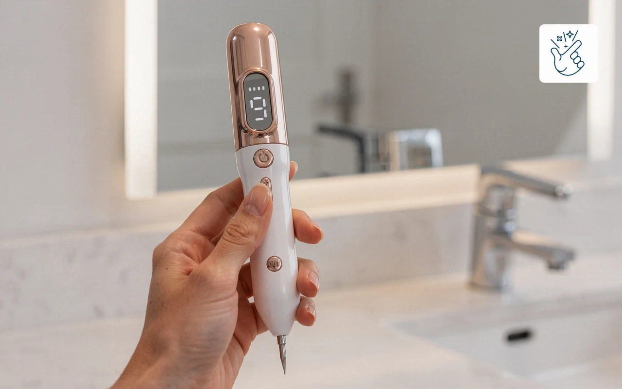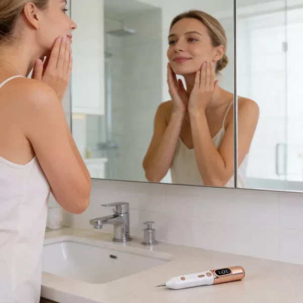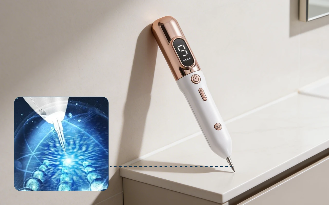 Elektrische Ionentechnologie zielt auf Makel ab, während gesunde Bereiche geschützt werden. Die Heilung ist sanft und vermeidet aggressive Chemikalien oder Risiken.