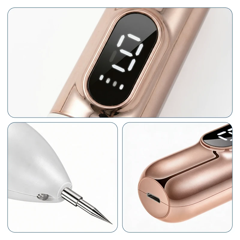 Intuitives Display und Design machen jeden Schritt einfach. Nadeln können schnell ersetzt und das Gerät bequem per USB aufgeladen werden.