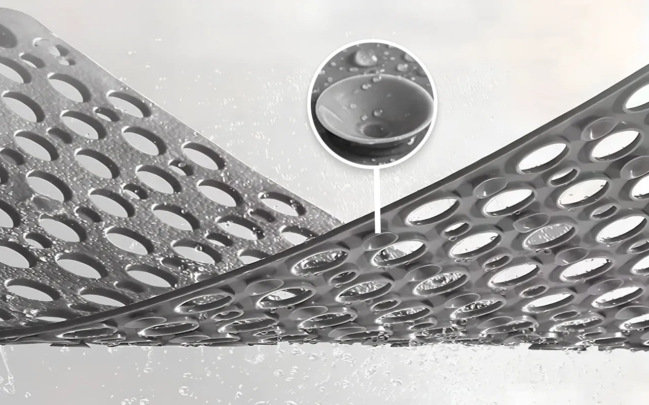Hochfeste Saugnäpfe halten die Matte sicher auf nassen Fliesen an Ort und Stelle. Ihre Familie bewegt sich mit Vertrauen, frei von plötzlichen Ausrutschern.