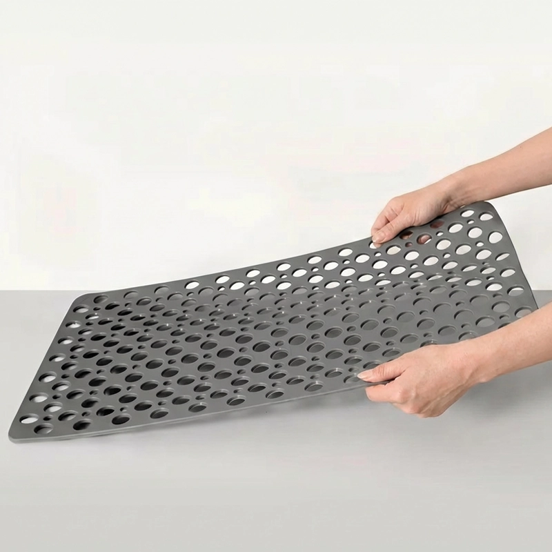Ich habe das für die Duschen nach dem Fitnessstudio gekauft. Die Saugnäpfe haften fest, kein Rutschen, und die strukturierte Oberseite entspannt meine müden Füße, während das Wasser darüber läuft.