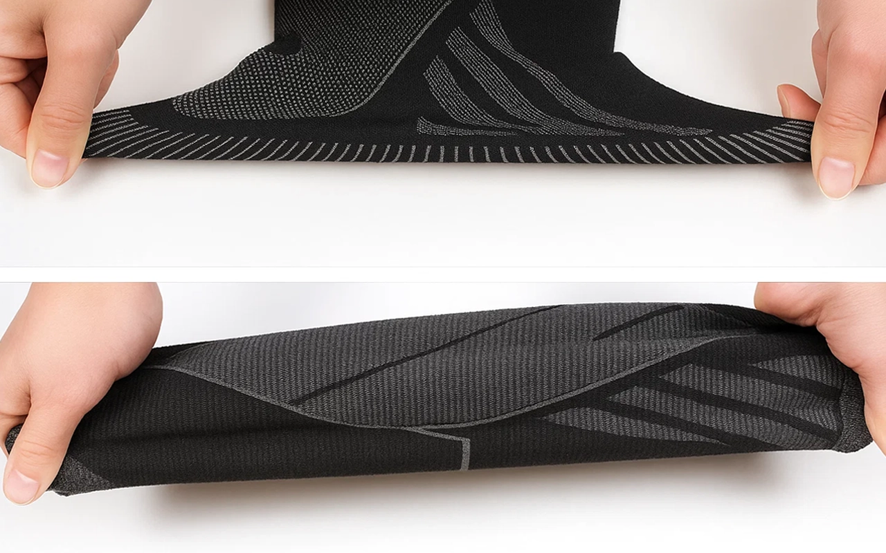 Elastisches Material schmiegt sich ans Bein und rutscht nicht nach unten. Bleiben Sie konzentriert mit Manschetten, die immer an Ort und Stelle bleiben.