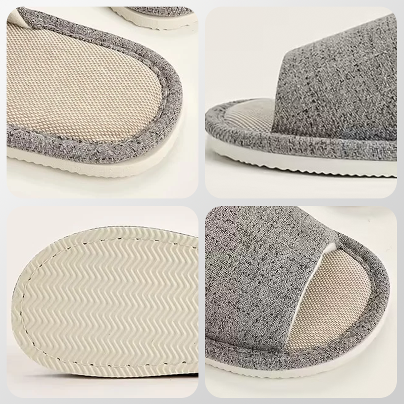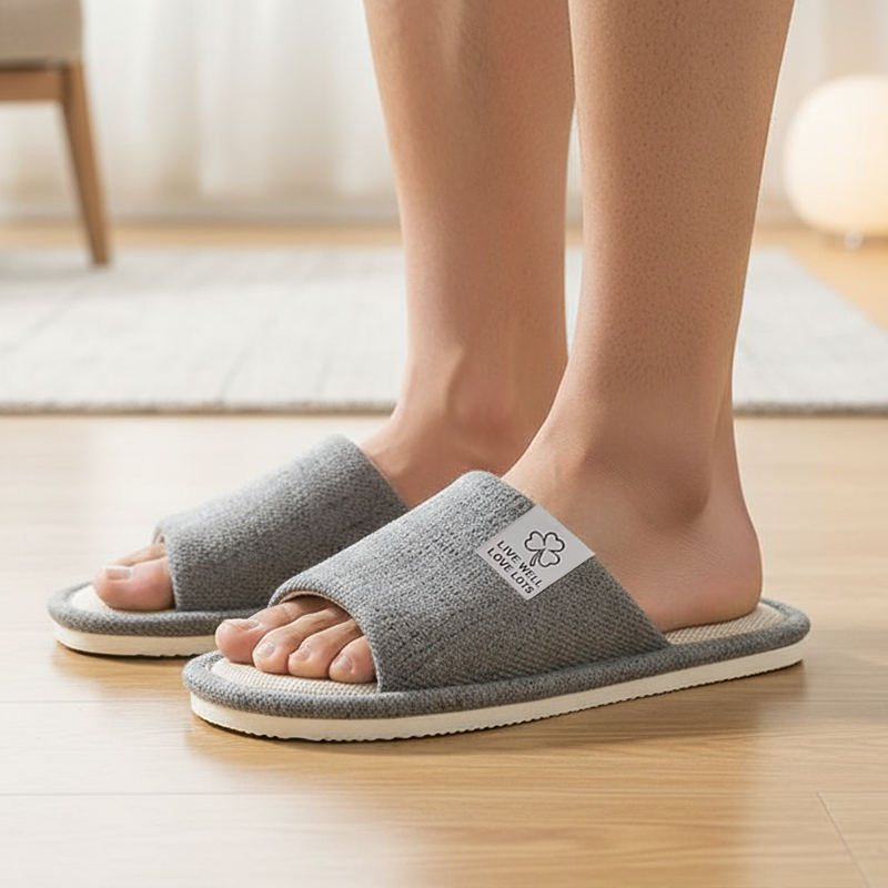 Die Baumwoll-Leinen-Mischung lässt Luft zirkulieren und verhindert schwitzige Fußsohlen. Genießen Sie weichen Stoff, der die Haut den ganzen Tag entspannt hält.
