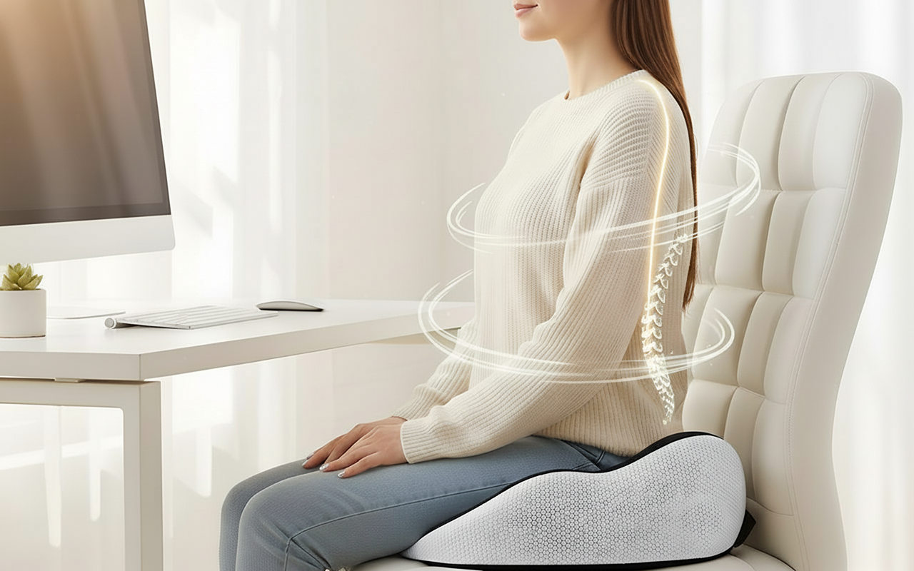 Dieses Stützkissen bleibt kühl und korrigiert meine Haltung. Hilft wirklich bei langen Lernsessions am Schreibtisch.