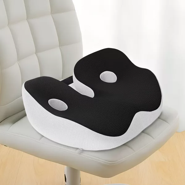 Dieses Kissen zur Arbeit und zurück zu tragen ist einfach, und mein Rücken schmerzt viel weniger. Die Form macht es super bequem, stundenlang zu sitzen.