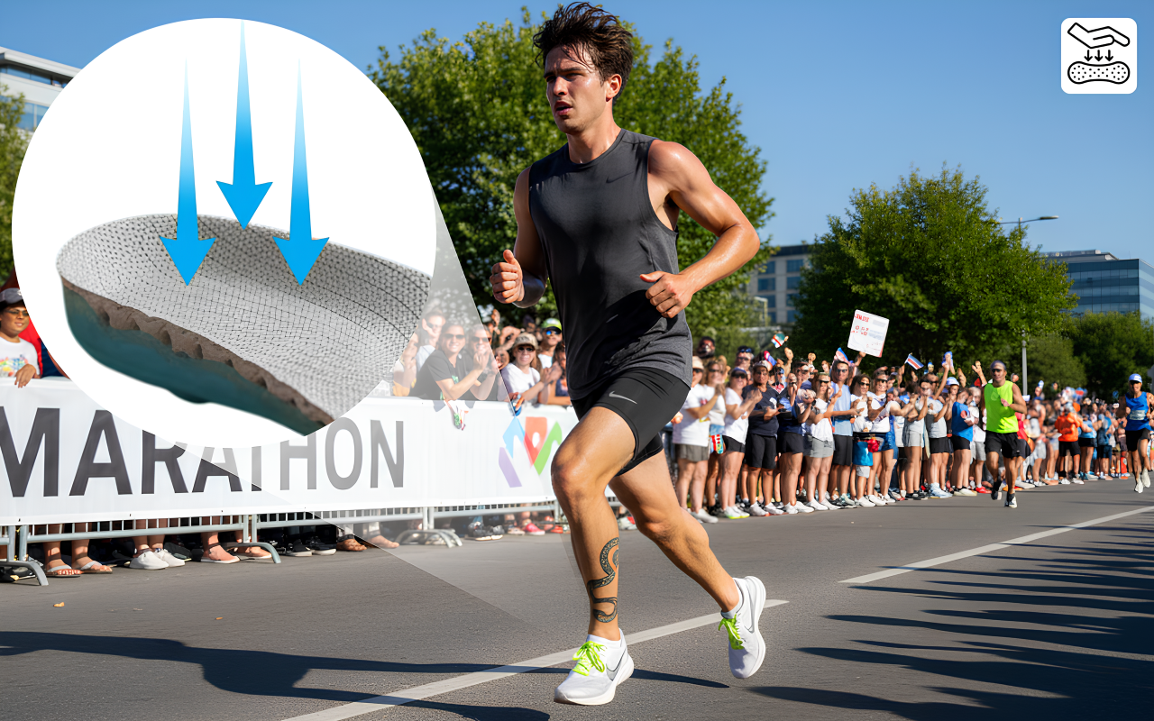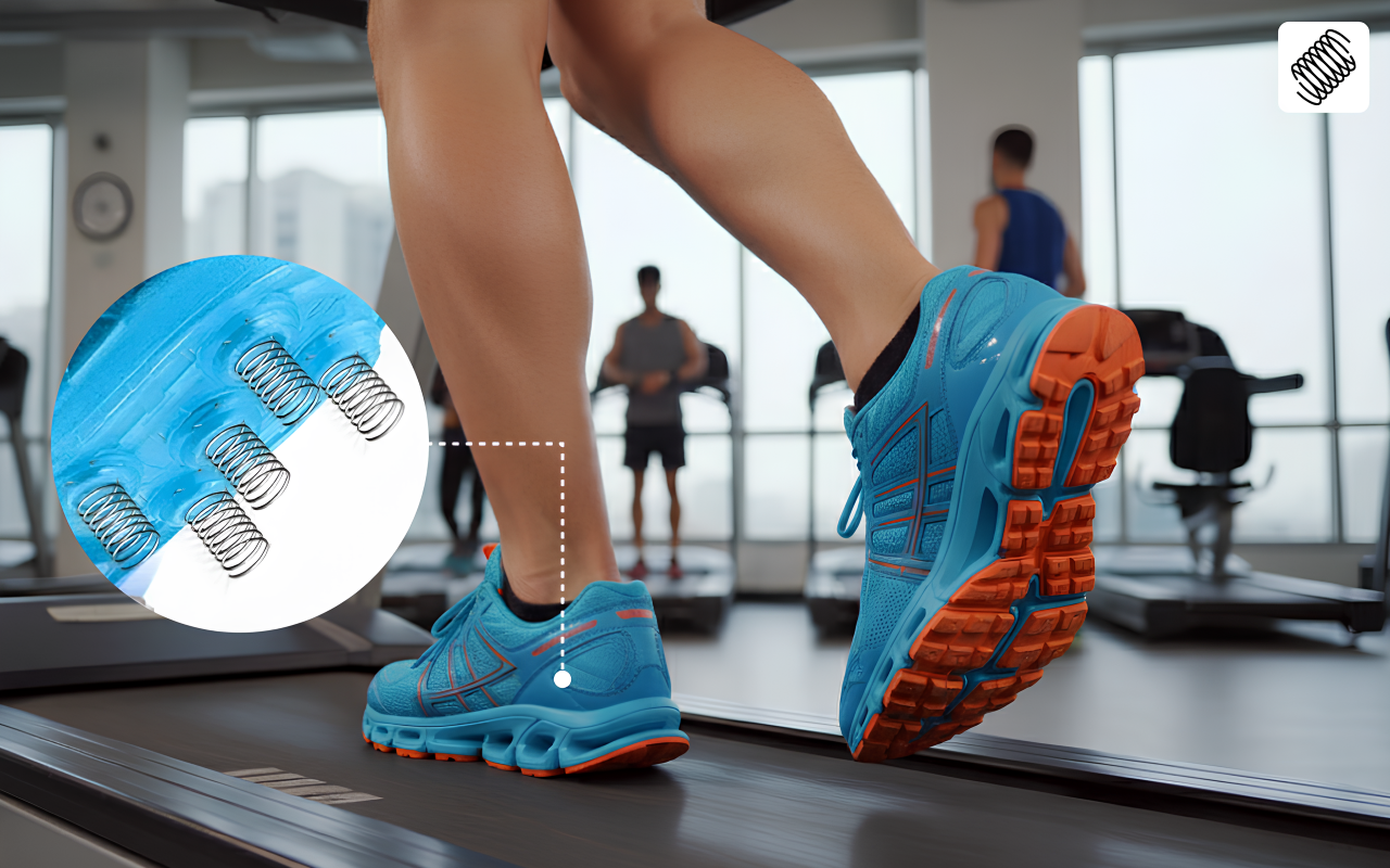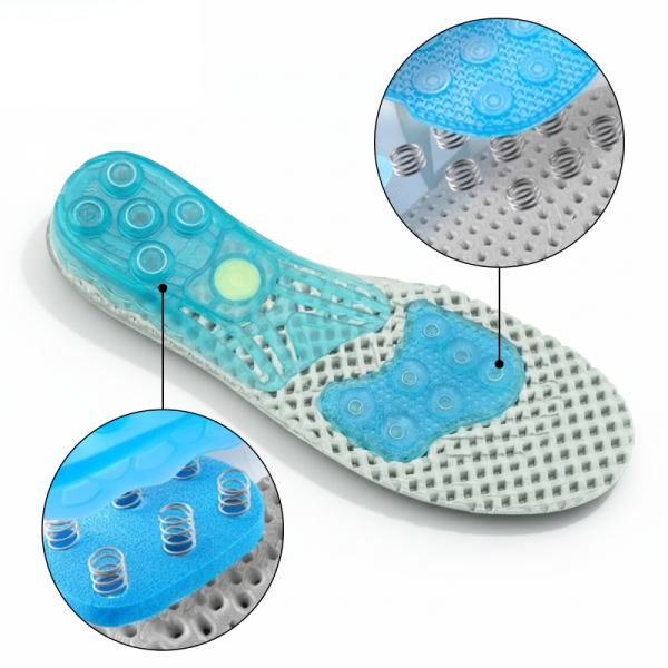 Einzigartige Federungstechnologie absorbiert Stöße und reduziert Muskelverspannungen. Die Erleichterung breitet sich schnell aus und hilft schmerzenden Fersen und Fußgewölben, sich schnell zu erholen.