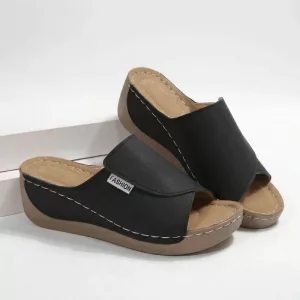 Diese Keilsandalen sind so bequem! Ich gehe jeden Morgen mit meinem Hund spazieren und meine Schritte fühlen sich leicht an. Meine Zehen werden nie schwitzig, selbst wenn es heiß ist.