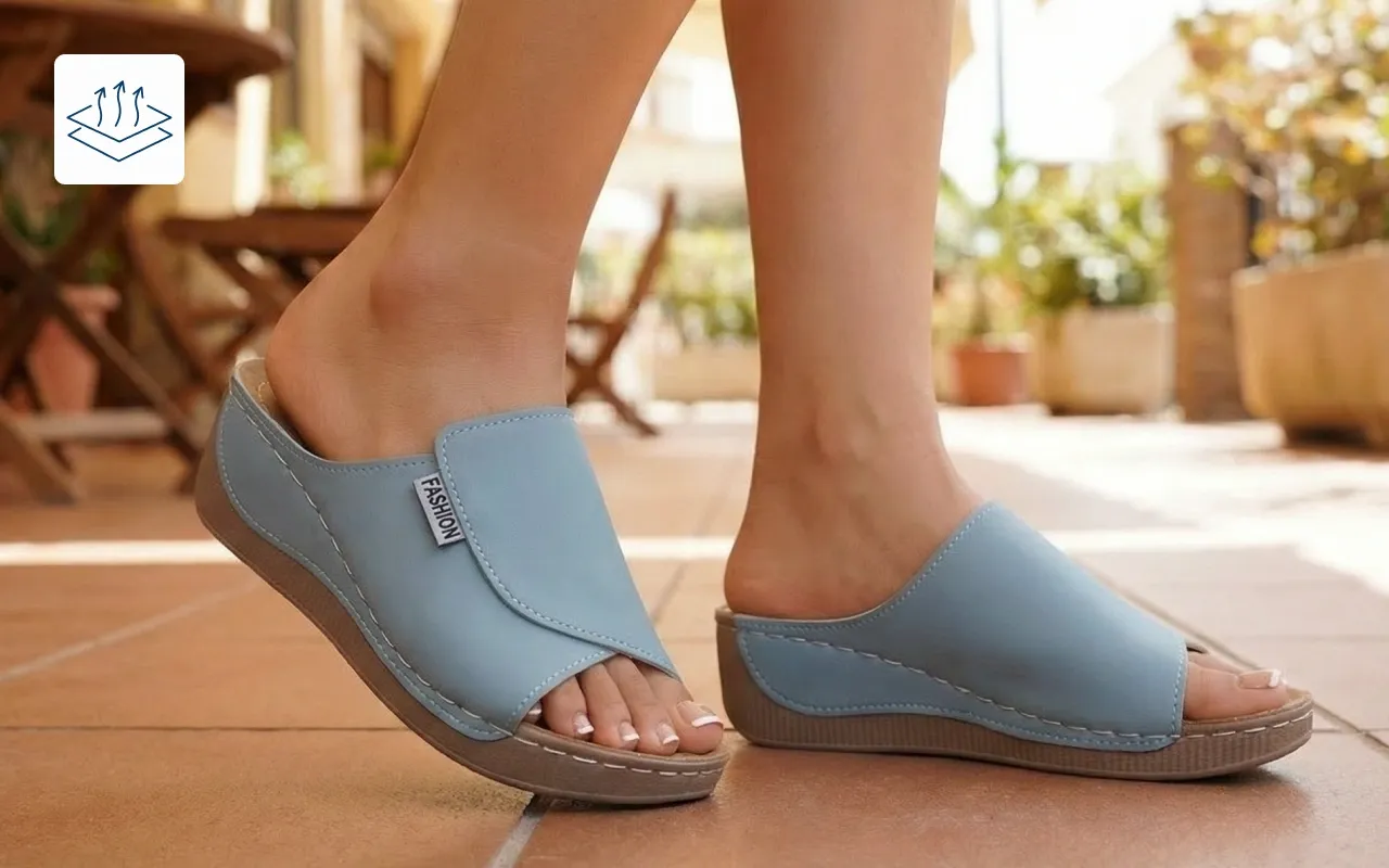 Das offene Zehendesign sorgt für Luftzirkulation und immer frische Haut. Kein verschwitzter Komfort mehr bei Spaziergängen an heißen Tagen.