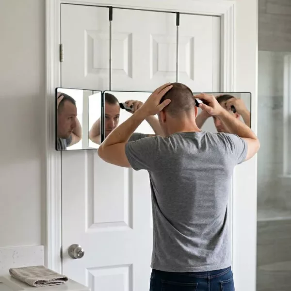 Der dreiseitige Spiegel ermöglicht es mir, meinen Bart viel besser als vorher zu trimmen. Ich kann endlich die Rückseite meines Kopfes sehen, ohne mich verdrehen zu müssen.