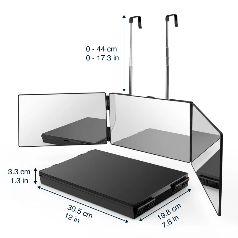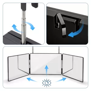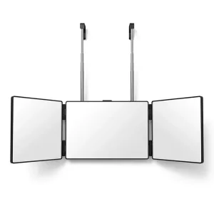 Der Ortorex-Dreifachspiegel löst schnell und einfach alltägliche Probleme bei der Körperpflege. Stellen Sie die Höhe für volle Sicht beim Stylen oder Rasieren ein. Klappen Sie ihn flach, um ihn in Taschen oder Schubladen für unterwegs zu verstauen. Profitieren Sie täglich von klaren Spiegelbildern für Haarschnitte, Make-up oder Hautpflege.