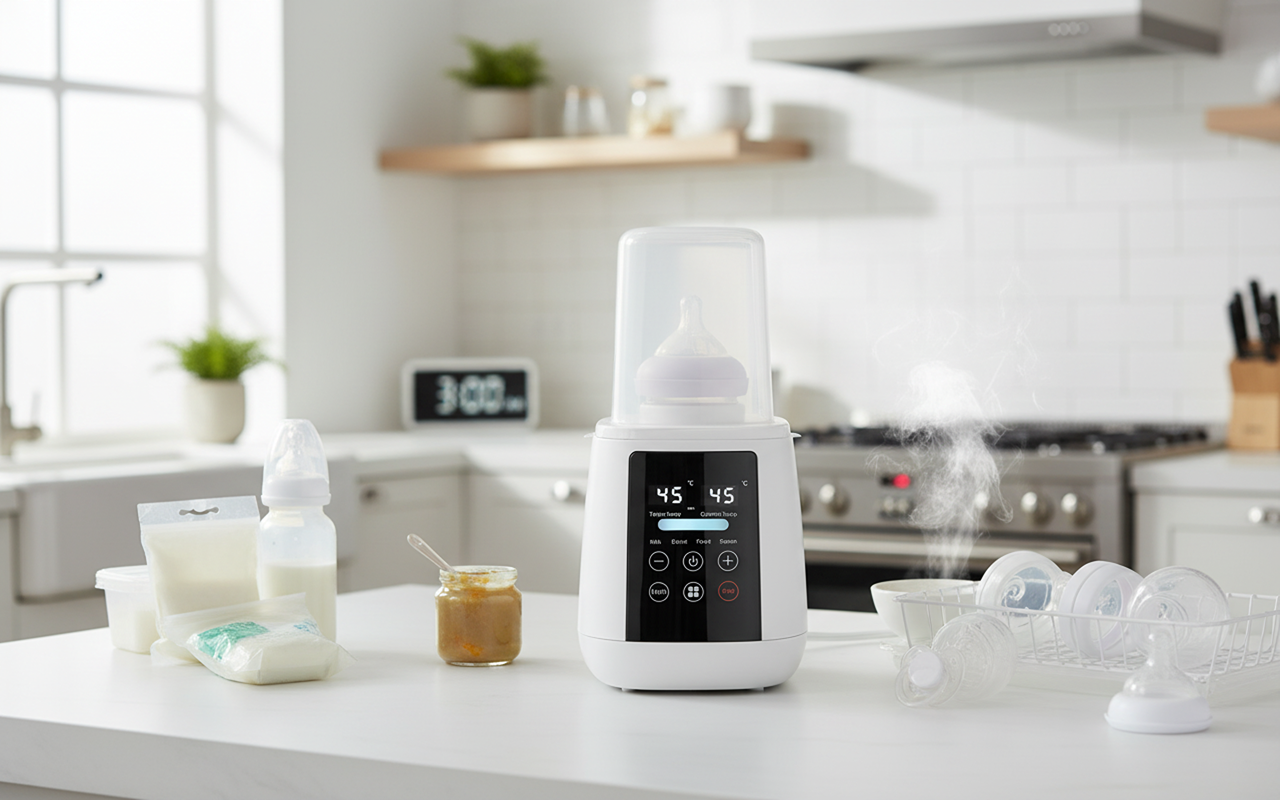 Erwärmen, Auftauen, Sterilisieren und Essen zu jeder Zeit bereit halten. Dieses einzelne Gerät reduziert das Chaos und macht den hektischen Alltag einfacher.