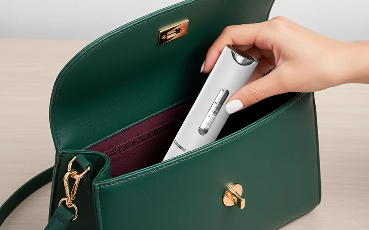 Der Applikator ist super leicht, also nehme ich ihn immer auf Reisen mit. Er passt direkt in meine kleine Tasche und ist jederzeit einsatzbereit.