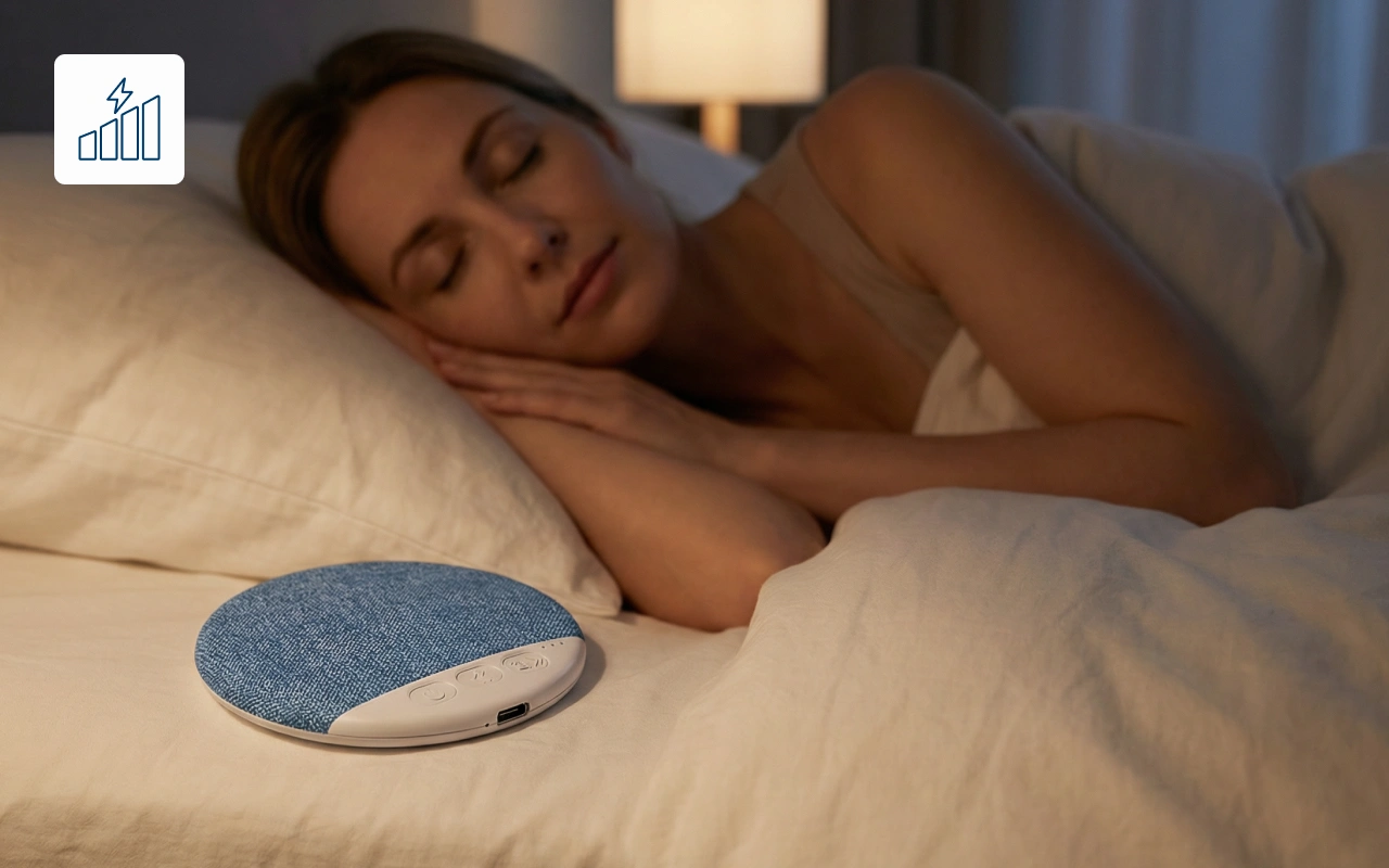 Ortorex bringt ruhige Nächte in Ihr geschäftiges Leben. Entspannen Sie sich schnell nach langen Tagen und schützen Sie Ihre Träume vor Lärm. Genießen Sie beruhigende Naturgeräusche, die das Einschlafen erleichtern. Die schlanke Form passt perfekt auf jeden Nachttisch. Erleben Sie jede Nacht Komfort, Entspannung und einen tieferen Schlaf.