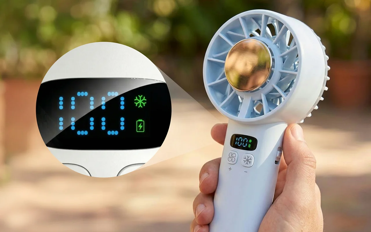 Ich benutze diesen Handventilator beim Kochen in meiner kleinen Küche. Er verhindert, dass ich überhitze, und der digitale Bildschirm ist super praktisch.
