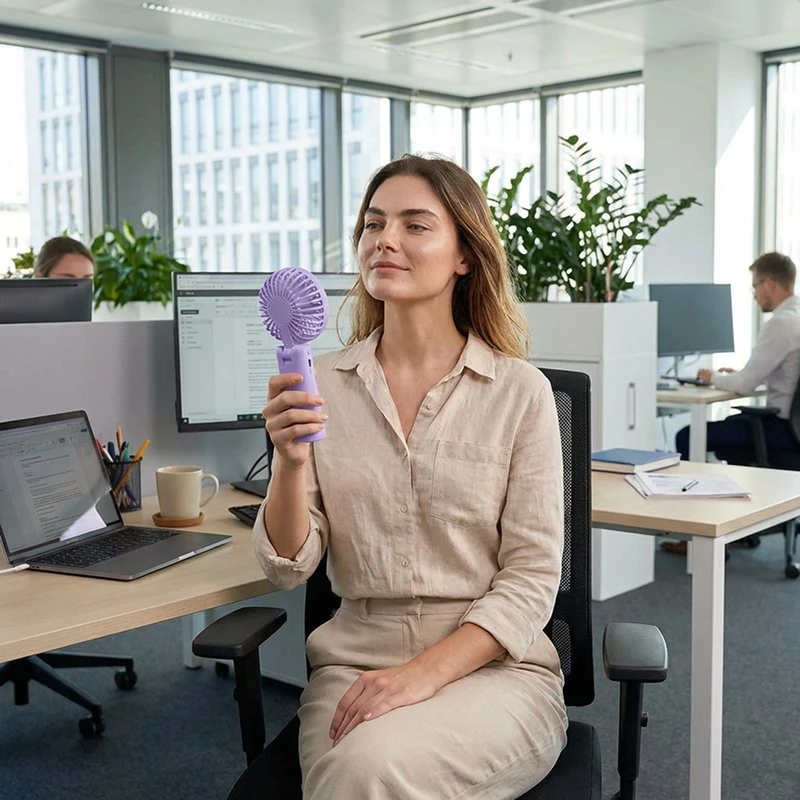 Genießen Sie lang anhaltende Frische dank des leistungsstarken Akkus im Inneren. Vergessen Sie häufiges Aufladen und bleiben Sie stundenlang angenehm kühl, ohne sich Sorgen machen zu müssen.
