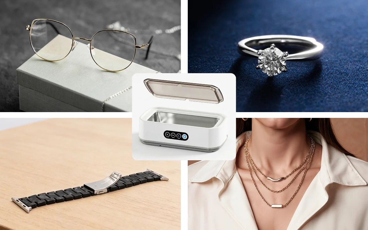 Reinigen Sie problemlos verschiedene Accessoires, Werkzeuge und Haushaltsgegenstände. Halten Sie alles von Ringen bis zu Prothesen frisch, sicher und strahlend sauber.