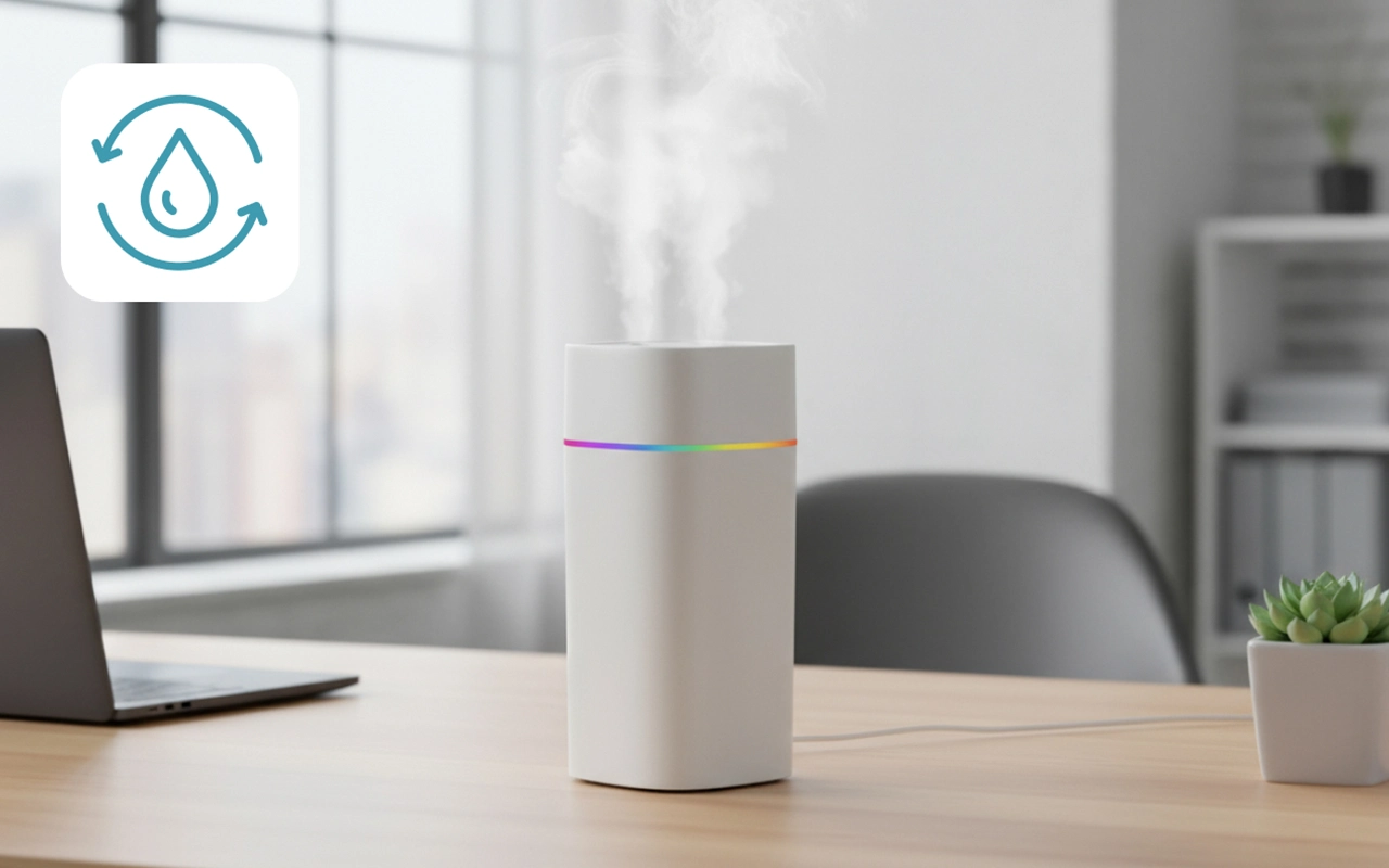 Dieser Nebelspender läuft die ganze Nacht leise und verbraucht nur wenig Wasser. Wenn ich aufwache, fühlt sich mein Hals nicht mehr trocken an.