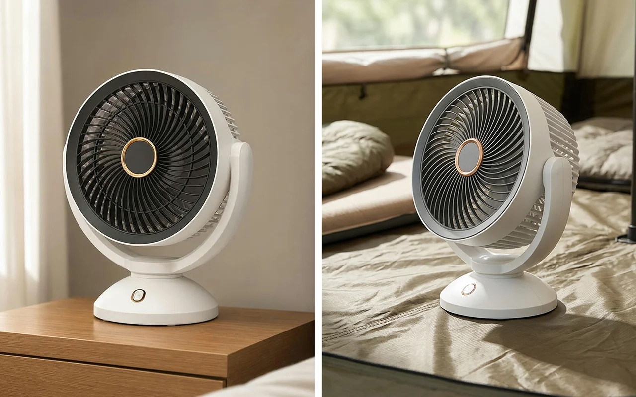 Wir haben diesen kleinen Ventilator letztes Wochenende mit zum Camping genommen. Er lief die ganze Nacht über eine Powerbank, hielt das Zelt von stickiger Luft frei und ließ sich problemlos in meinem Rucksack verstauen.