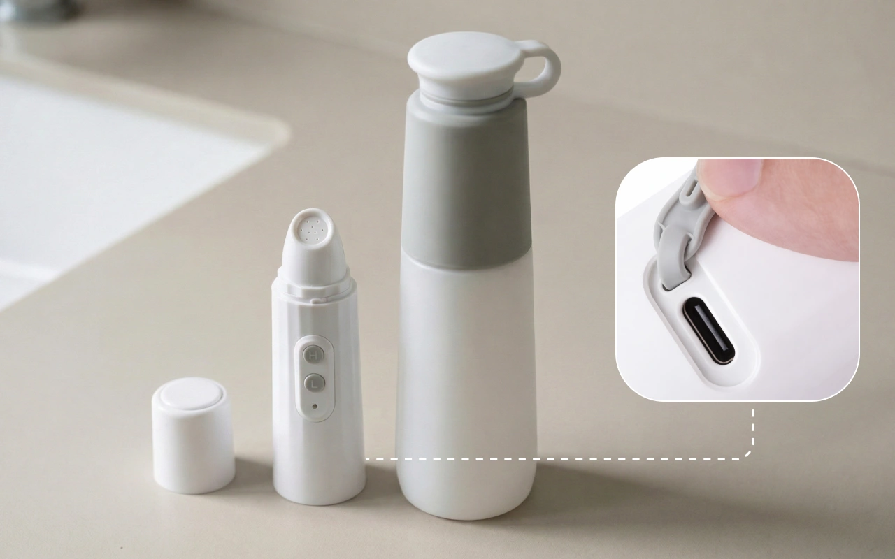 Das erste Mal einen Mini-Sprüher benutzt und wow, er funktioniert super. Das schnelle Aufladen ist großartig. Ich wünschte, ich hätte das Ding früher gefunden, wirklich im Alltag hilfreich.