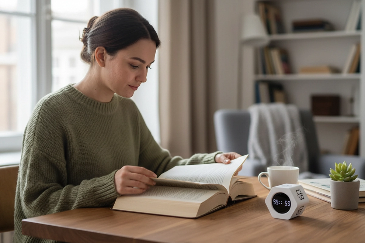 Dieser Würfel hat mir geholfen, mein Buch zu Ende zu lesen, ohne abgelenkt zu werden. Die Stummschaltung ist super für die Bibliothek und der Akku hält ewig.