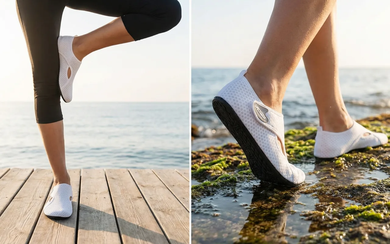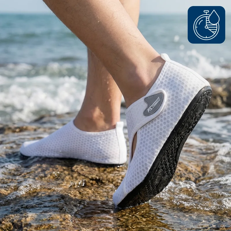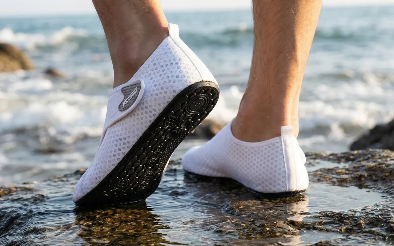 Spezielle Sohlen verhindern unerwünschtes Rutschen auf Felsen oder nassen Fliesen. Fühlen Sie sich überall sicher, vom Pool bis zum Strand.