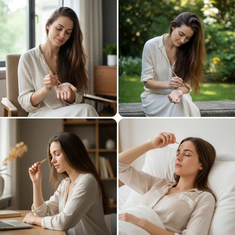 Ich habe ihn in meiner Arbeitstasche und nutze ihn zwischen Besprechungen an meinen Schläfen und meinem Kiefer. Er lindert spürbar Spannungskopfschmerzen und hilft mir, mich wieder zu konzentrieren.