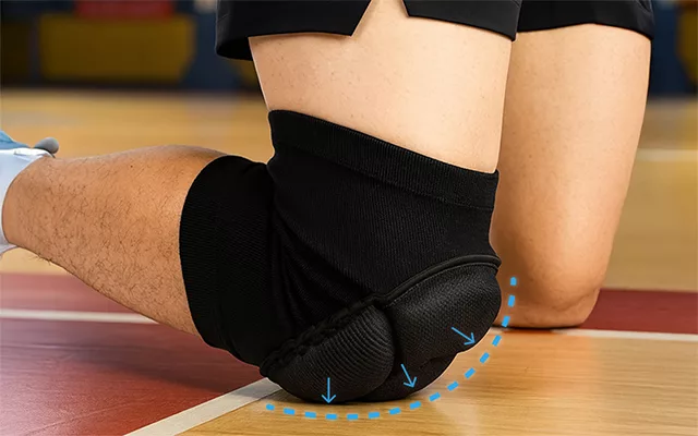 Dichtes Schwammpolster schützt die Knie vor Stößen und Stürzen. Jede Landung ist weniger belastend für Ihre Beine.