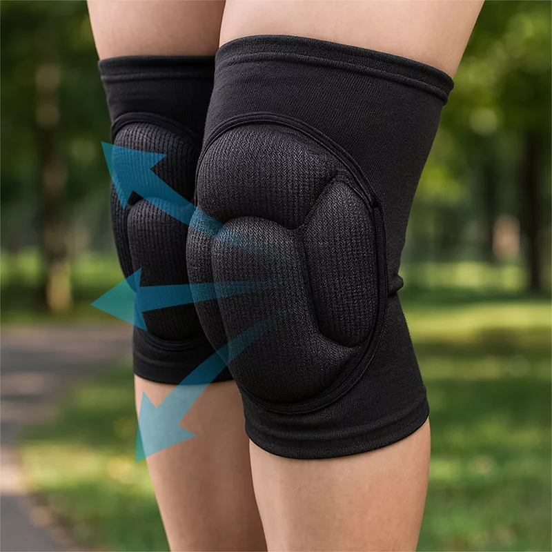 Dichtes Schwammpolster schützt die Knie vor Stößen und Stürzen. Jede Landung ist weniger belastend für Ihre Beine.