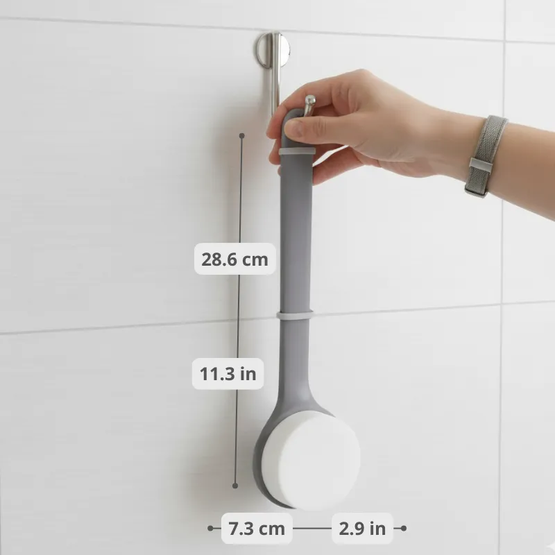 Nie wieder Probleme, den Rücken zu erreichen. Das clevere Design lässt Cremes sanft über schwer zugängliche Bereiche gleiten. Genieße eine gleichmäßige Verteilung ohne Verschmieren oder verschwendete Lotion.