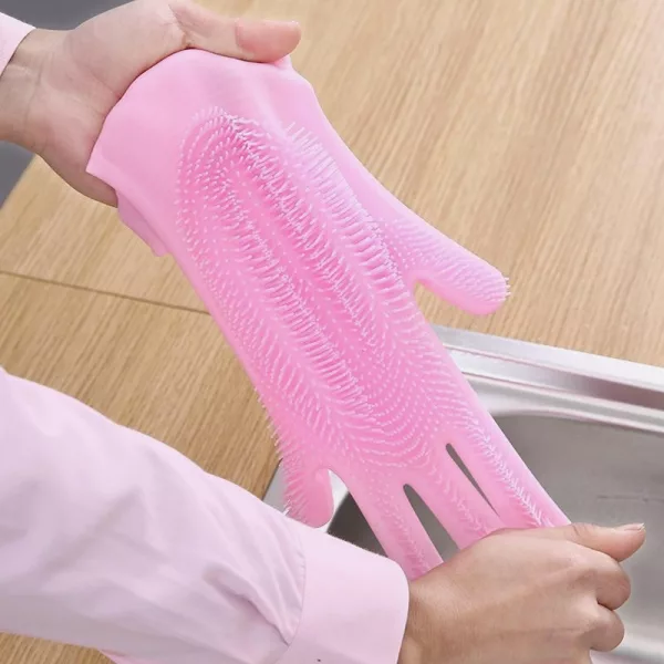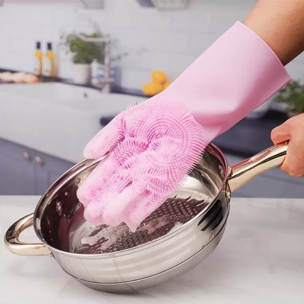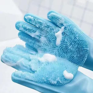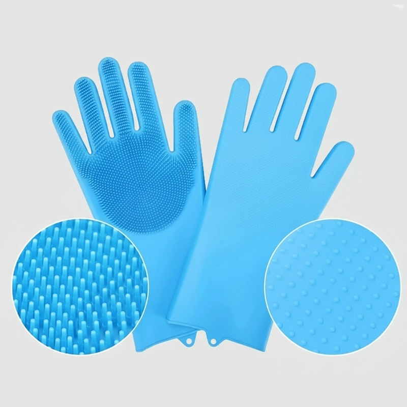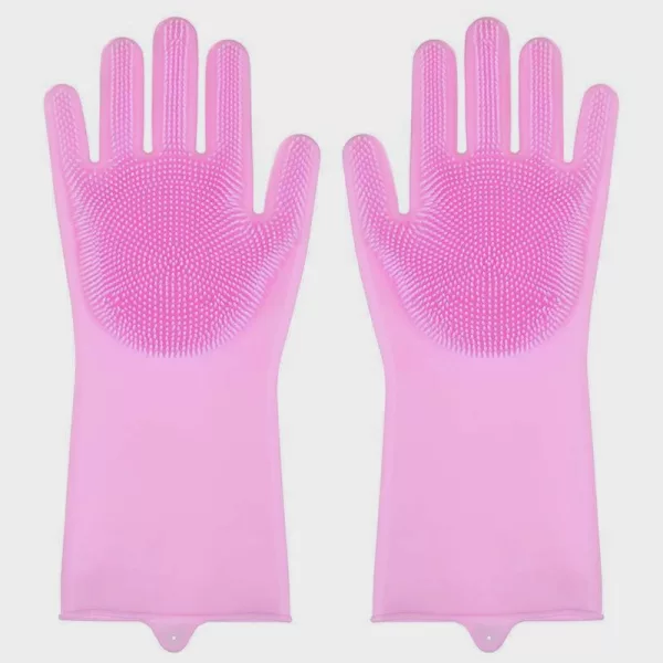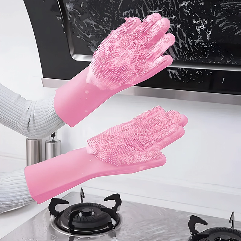Diese Scheuerhandschuhe machen separate Bürsten oder Schwämme überflüssig und sparen Ihnen Zeit und Mühe. Sie entfernen Lebensmittelreste, Seifenschaum und Schmutz in Sekunden.