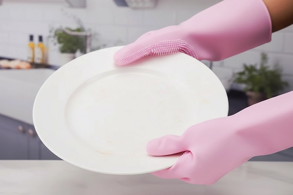 Unsere Spülhandschuhe reinigen Glas, Fliesen, Metall und Kunststoff, ohne Kratzer zu hinterlassen.