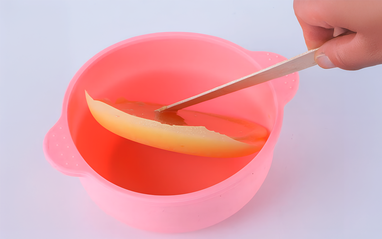 Flexibles Silikon ermöglicht es, das Wachs nach dem Abkühlen in Sekunden zu entfernen. Einfach mit Wasser abspülen und wiederverwenden – so bleibt alles frisch und hygienisch.