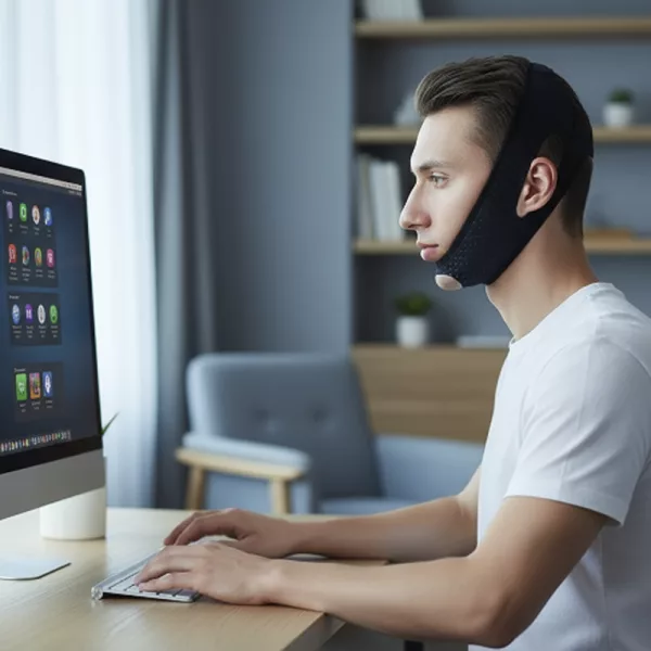 Der dehnbare Stoff ist wirklich angenehm und hinterlässt keine Abdrücke. Ich trage es während der Hausaufgaben und mein Kiefer sieht jetzt viel definierter aus.