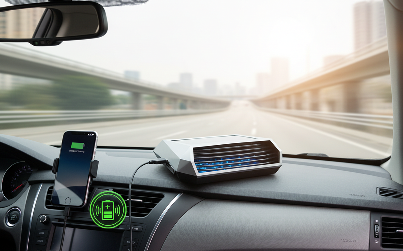 Solaraufladen ist so cool. Ich muss nichts mehr einstecken und habe trotzdem bei jeder Fahrt saubere Luft. Passt perfekt neben den Schalthebel.