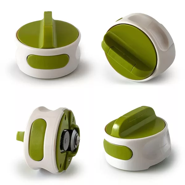 Bequemer Griff verhindert ein Abrutschen beim Drehen jedes Deckels. Kinder und Erwachsene finden die Bedienung einfach und stressfrei.