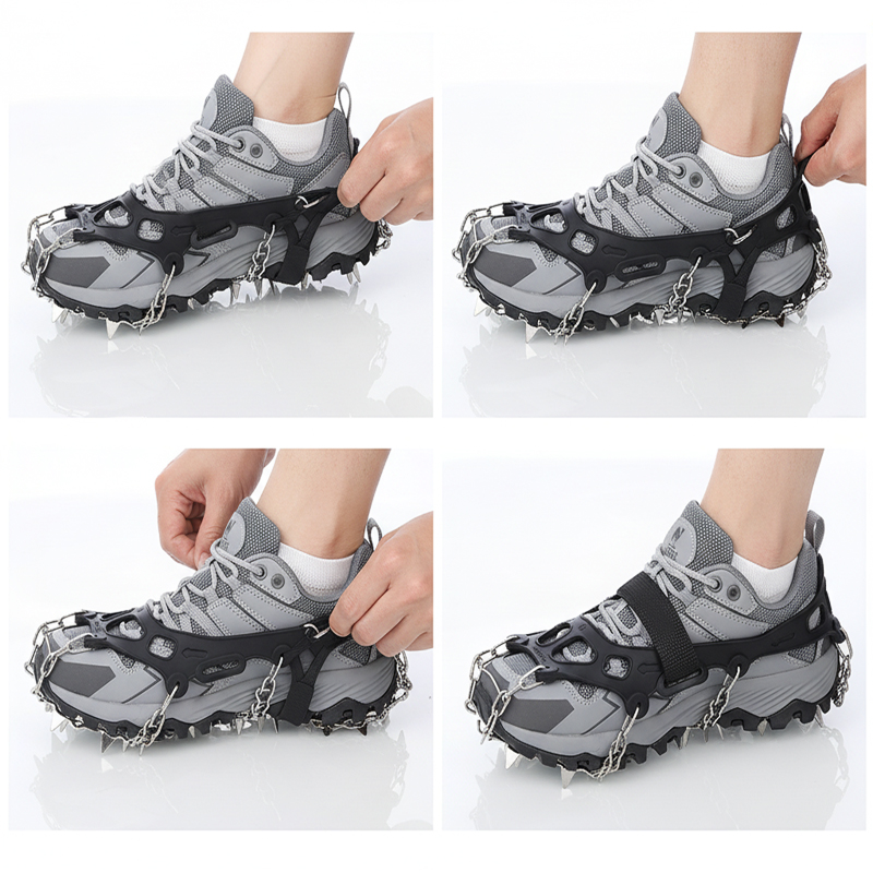 Flexibles Silikon widersteht dem Reißen und hält eisigen Bedingungen stand. Ihre Spikes bleiben auch nach vielen Winterspaziergängen oder -anstiegen stark.